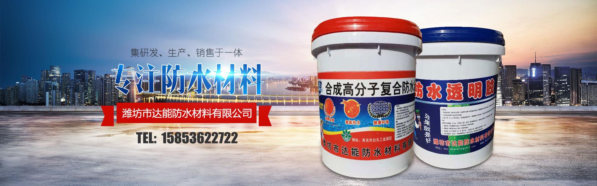 濰坊市達能防水材料有限公司是一家從事防水卷材、防水涂料的公司。主營產品:防水卷材(改性瀝青、聚乙烯丙綸高分子自粘防水卷材),防水涂料(高聚物改性瀝青、非固化、JS防水涂料)外墻防水透明膠、丙烯酸鹽注漿液、水固化注漿料、丁基膠帶、丁基熱熔膠、液體卷材、免砸磚研發、生產、銷售于一體的現代化防水涂料生產廠家,材料銷往山東、江蘇、新疆、四川、內蒙、山西、甘肅、安徽等省份。